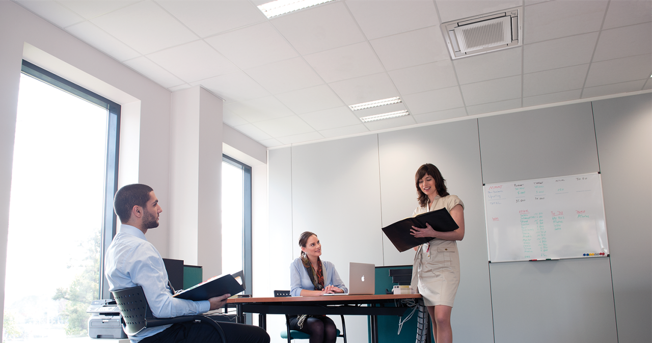 Nuestra gama de unidades interiores está diseñada para integrarse perfectamente en su edificio de oficinas.